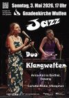 • Sonntag, 3. Mai 2026, 17 Uhr: „Duo Klangwelten“. Anna-Karina Barthel (Gesang) und Carlotta Ribbe (Vibraphon) verbinden seit 2022 eigene Kompositionen und kreative Arrangements zu einer einzigartigen Klangwelt. In ihrer besonderen Besetzung entstehen dialogische, atmosphärische Stücke zwischen Jazz, Improvisation und emotionaler Tiefe. Das Duo wurde ausgezeichnet mit dem „Domicil Förderpreis 2023“ und dem „Women in Jazz Award 2025“. Der Eintritt ist frei - um eine Spende wird gebeten.