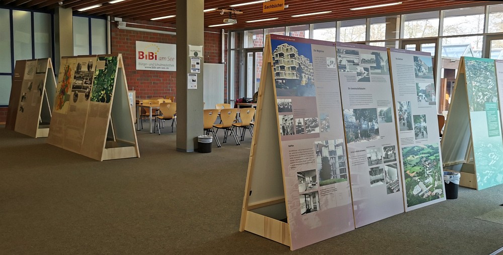 | [[Datei:Ausstellung Neue Heimat Bibi.jpg|framed|'''Die Ausstellung "Neue Heimat in Dorsten-Wulfen?" ist jetzt auch in der Bibi am See bis zum 11.3. auf 23 Rollups zu sehen. Die Geschichtsgruppe des Heimtvereins hat unter Federführung von Reinhard Schwingenheuer die Informationen zusammengetragen und stellt mehrere Wulfener vor, die ganz woanders geboren sind. Öffnungszeiten Di 9-12, 14-17, Mi 14-17, Do 14-19, Fr 9-12]]