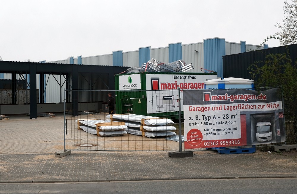 [[Datei:Maxi Garagen im Bau.jpg|framed|'''Im Gewerbegebiet Dimker Heide entstehen am Langobardenring große Garagen, z.B. zur Unterbringung von Wohnmobilen''', 14.4.]]