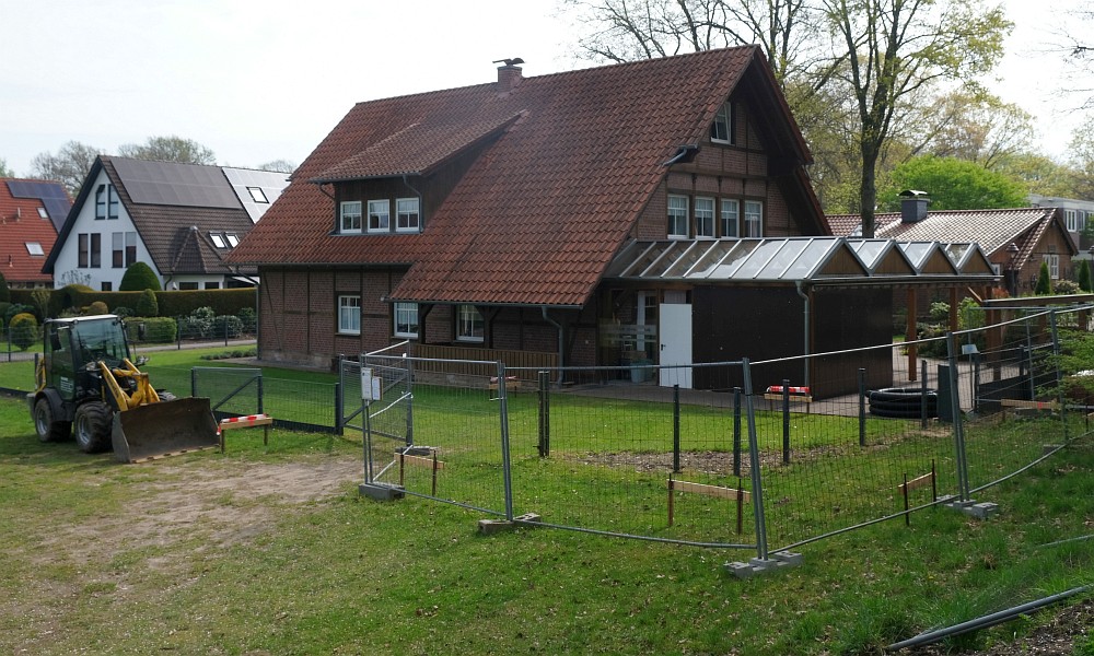 [[Datei:HV Platz für Backhaus.jpg|framed|'''Der Heimatverein baut an der eingezäunten Stelle ein Backhaus, gefördert durch LEADER-Mittel. '''Foto: 17.4., vor dem ersten Spatenstich ]] | |||