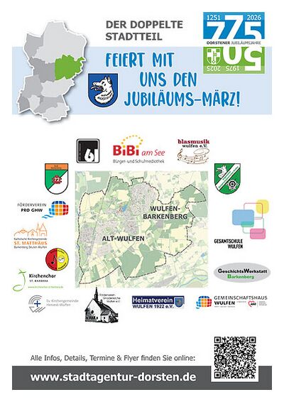 Den Flyer mit dem Jubläumsprogramm im März gibt es hier: Datei:Jubiläum Wulfen Flyer Final.pdf
