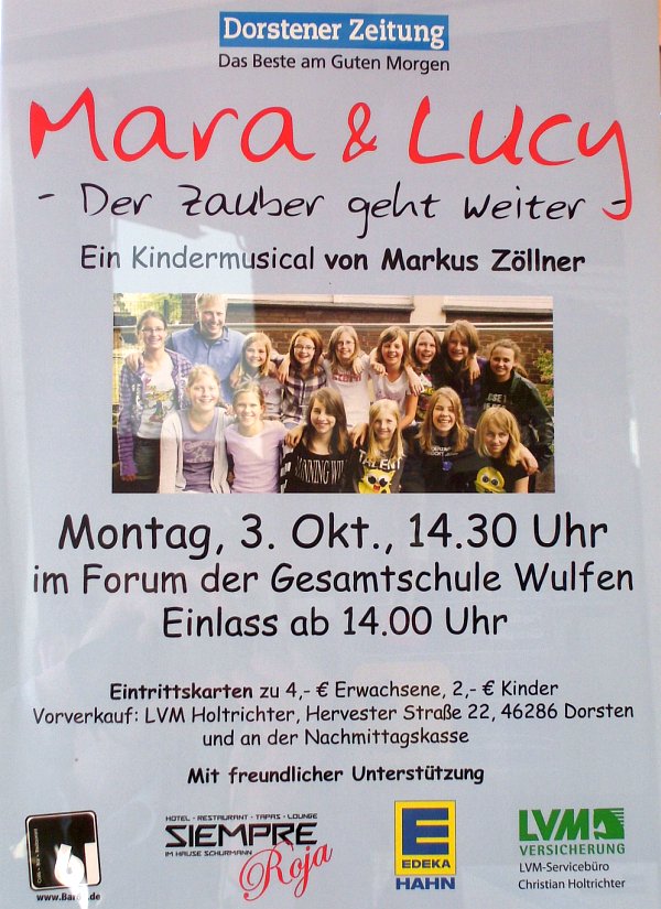 Mo 3.10. Kindermusical "Mara und Lucy" von Markus Zöllner Gesamtschul-Forum 14.30 Uhr