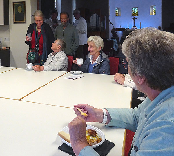 Wegen des Regens wurden Kaffee und Currywurst teilweise in der Küche genossen