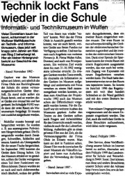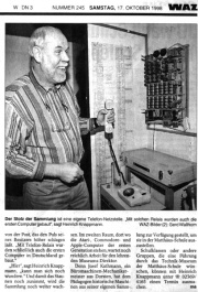 | 17:00, 8. Jan 2009 | 1998.10.17.b WAZ.jpg (Datei) | 116 KB | Zeitungsausschnitt zum Museum aus der WAZ vom 17.10.1998, Teil b | 1 | |