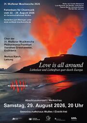 | 16:39, 5. Mär 2026 | Plakat WMW 2026.jpg (Datei) | 163 KB | Wul | Liebe in all ihren Facetten - von der Renaissance bis heute - quer durch Europa | 1 | |