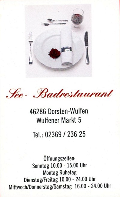 [[Datei:See Badrestaurant Visitenkarte.jpg|framed|Visitenkarte um 2000 ]] | |||