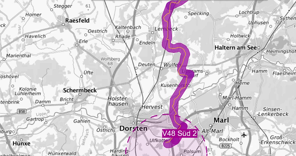 | | [[Datei:Karte Amprion Korridor B.jpg|framed|'''Die geplante Stromtrasse "Korridor B" von der Nordsee bis nach Altendorf-Ulfkotte]] |