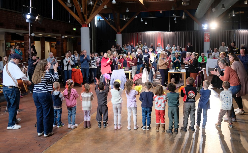 [[Datei:Zauberer Truquini mit Kinderchor.jpg|framed|'''Bei der Stadtteil-Rallye für Grundschulkinder gab es einige Preise zu gewinnen, die beim zauberhaften Familien-Nachmittag verlost wurden. Zauber Truquini führte durch das Programm. Darin trat auch der Schulchor der Grünen Schule unter Leitung von Susanne Schulenburg auf''', 22.3.]]