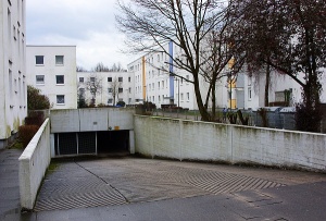 - Tiefgarage Schwarze Finnstadt, Zufahrt zwischen den beiden Blocks