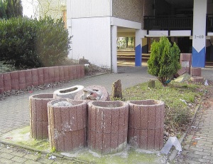 [[Bild:Anlehnstelen.jpg|framed|'''Anfang Mai 2010 wurden diese "Anlehnstelen" vor der Bibliothek errichtet (von wem?). Sie werden NIE genutzt, dieses Foto ist GESTELLT. ]] | [[Bild:Anlehnstelen.jpg|framed|'''Anfang Mai 2010 wurden diese "Anlehnstelen" vor der Bibliothek errichtet (von wem?). Sie werden NIE genutzt, dieses Foto ist GESTELLT. Aktualisierung: Eine der schwarzen Kunststoffköpfe wurde im Sommer 2012 kaputtgemacht ]] | ||