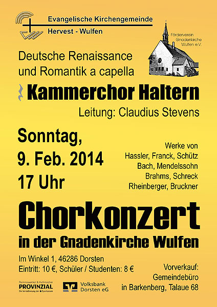 [[Bild:Plakat_Chor_Farbe_kl.jpg|thumb|500px|Chorkonzert in der Gnadenkirche Alt-Wulfen]] | |||