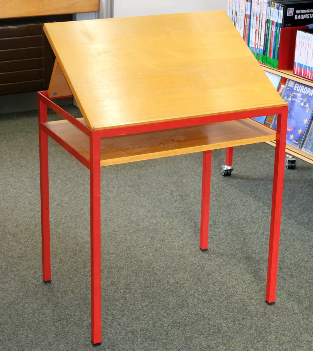 *'''J - kleiner Ausstellungstisch (Schräge kann flachgelegt werden) 75x70x50 | *'''J - kleiner Ausstellungstisch (Schräge kann flachgelegt werden) 75x70x50 | ||