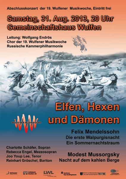 Sa 31.8., 20 Uhr: Abschlusskonzert Musikwoche, Titel: "Elfen, Hexen und Dämonen", Gemeinschaftshaus Wulfen