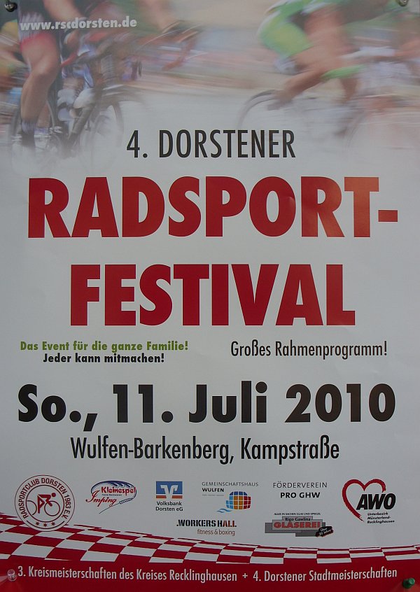 So 11.7. Radsportfestival Organisationsbüro und Rahmenprogramm im Gemeinschaftshaus, Rennstrecke sind Barkenberger Straßen, http://www.rscdorsten.de