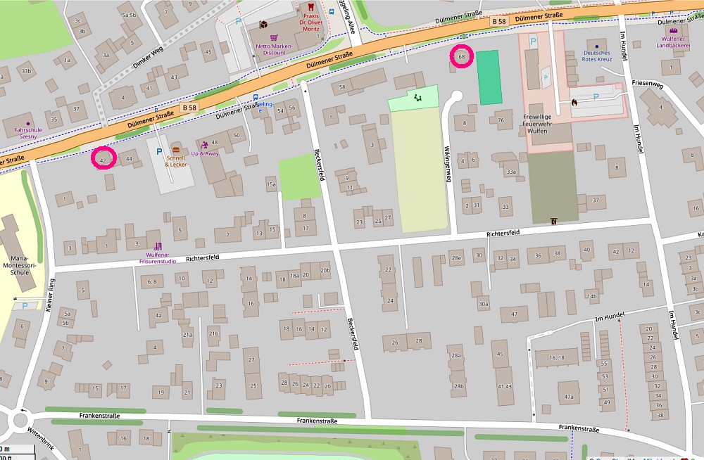 Vorwarnung: "Aufgrund von Arbeiten zur Verlegung von Leitungen wird auf der Dülmener Straße (B58) zwischen den Hausnummern 42 bis 68 im Zeitraum vom 2. März (Montag) bis voraussichtlich Ende Mai 2026 eine Wanderbaustelle eingerichtet. Während der Arbeiten kommt es zu einer halbseitigen Sperrung. Der Verkehr wird in diesem Bereich durch eine mobile Ampelanlage geregelt. Die Bushaltestelle Fritz-Eggeling-Allee ist von den Arbeiten betroffen und muss für die Dauer der Maßnahme verlegt werden. Verkehrsteilnehmerinnen und Verkehrsteilnehmer werden gebeten, den Bereich nach Möglichkeit zu umfahren und die Beschilderung vor Ort zu beachten." Text: Stadt Dorsten, 24.2., Karte: openstreetmap.orgZwei Tage lang fand in der Gnadenkirche Wulfen ein Kinderkleider- und Spielzeugmarkt statt. Der Andrang war enorm. 12 Anbieter boten ihre Schätze feil. Foto: Bornemann, 20.2. / 21.2.2026Der Matthäusplatz vor der Kirche wird bis Ostern ganz neu gestaltet, Foto vom 18.2.Grundriss des Umbaus des evangelischen "Barkenberger Zentrums" zu einer Kindertagesstätte mit Mehrzweckraum, der auch für Gottesdienste geeignet ist. Man kann auf die Eröffnung gespannt sein (wann?). Derzeit wird außen ein Metallstab-Zaun gesetzt. Die Nachwuchsmusiker der Blasmusik Wulfen laden zu einem Vorspielnachmittag ein, am Sonntag 22.2. um 15 Uhr im Heimathaus am Rhönweg. Foto: Guido BludauSchneeglöckchen im Schnee am 19.2. um 13 Uhr. Am Nachmittag war die weiße Pracht schon wieder weg.Der Bückelsberg von oben, aufgenommen 1985. Quelle: RVR SchrägluftbilddatenbankDie Klasse 10.2. der Gesamtschule hat am Matthäus-Kirchplatz die Stolpersteine gereinigt, siehe https://www.gs-wulfen.de/2026/02/11/klasse-10-2-der-gesamtschule-wulfen-engagiert-sich-fuer-erinnerungskultur/(Foto: GSW)St. Helena ist eine der isoliertesten Inseln der Welt. Aber was hat sie mit Wulfen zu tun??? Lösung: der berichtende ARD-Korrespondent war Schüler der Gesamtschule Wulfen und ist hier auch zu hören: https://www.tagesschau.de/ausland/afrika/st-helena-flughafen-reisestopp-100.htmlDie Seniorengemeinschaft St. Barbara feierte fröhlich die Altweiberfastnacht mit Beiträgen der Kindergartenkinder und von Gerd Wüst. Foto: KnappmannZum Thema "Zwischennutzung Abrissfläche" trafen sich Interessierte im Gemeinschaftshaus. Wer mitmachen möchte kann sich gerne bei Grischa Göddertz melden: Nutzung-WulfenerMarkt(ä}proghw.de Nach vielen Jahren trat "Virus D" zum fünften Mal in ihrer Geschichte auf Einladung von ProGHW im Gemeinschaftshaus auf. Die Band spielt nur eigene Arrangements zu eigenen Texten. Am Schlagzeug der Wulfener Bernd Feller, 7.2.Wer möchte mitmachen bei der Zwischennutzung der Freifläche (frühere Ladenpassage)? Ein Treffen dazu gab es 5.2. im Gemeinschaftshaus.(Foto: 20.1.)"Die Neue Stadt Wulfen" ist in der Fachwelt immer mal noch ein Thema. Kürzlich hat sich die Zeitschrift "Industriekultur" diesen Aufsatz von Ulrich Schildberg veröffentlicht. Das Heft 3.25 ist vorhanden in der Barkenbergsammlung der BiBi am See.Der "Wulfener Berg" ist etwas ganz interessantes, ein eiszeitlicher Drumlin. Allerdings gibt es ihn nicht hier in Westfalen, sondern bei Wulfen (Fehmarn) . Er wurde von der Deutschen Geologischen Gesellschaft sogar mal als Geotop des Monats präsentiert, siehe https://www.dggv.de/gotm/februar-kliffaufschluss-am-drumlin-des-wulfener-bergs-auf-fehmarn-schleswig-holstein/ Foto: Kay KrienkeAm 28.1. fand wieder ein Lehrertreffen der ehemaligen Lehrer der Matthäusschule statt, diesmal im Maredo, am Brauturm Wulfen. Das erfreuliche Wiedersehen mit interessanten Neuigkeiten und Gesprächen wurde durch ein schmackhaftes Essen mit erfrischenden Getränken abgerundet.Die aktuellen Großveranstaltungen des Gemeinschaftshauses Bei der Shell-Tankstelle kann man seit einiger Zeit mit erstaunlichen 300 KW Ladeleistung Strom zapfen Diese aktuelle Karte zeigt die öffentlichen Kfz-eLadestationen. Auf der originalen Internet-Seite kann man sogar abrufen, ob die 16 Stromzapfstellen gerade frei sind: https://chargefinder.com/de/