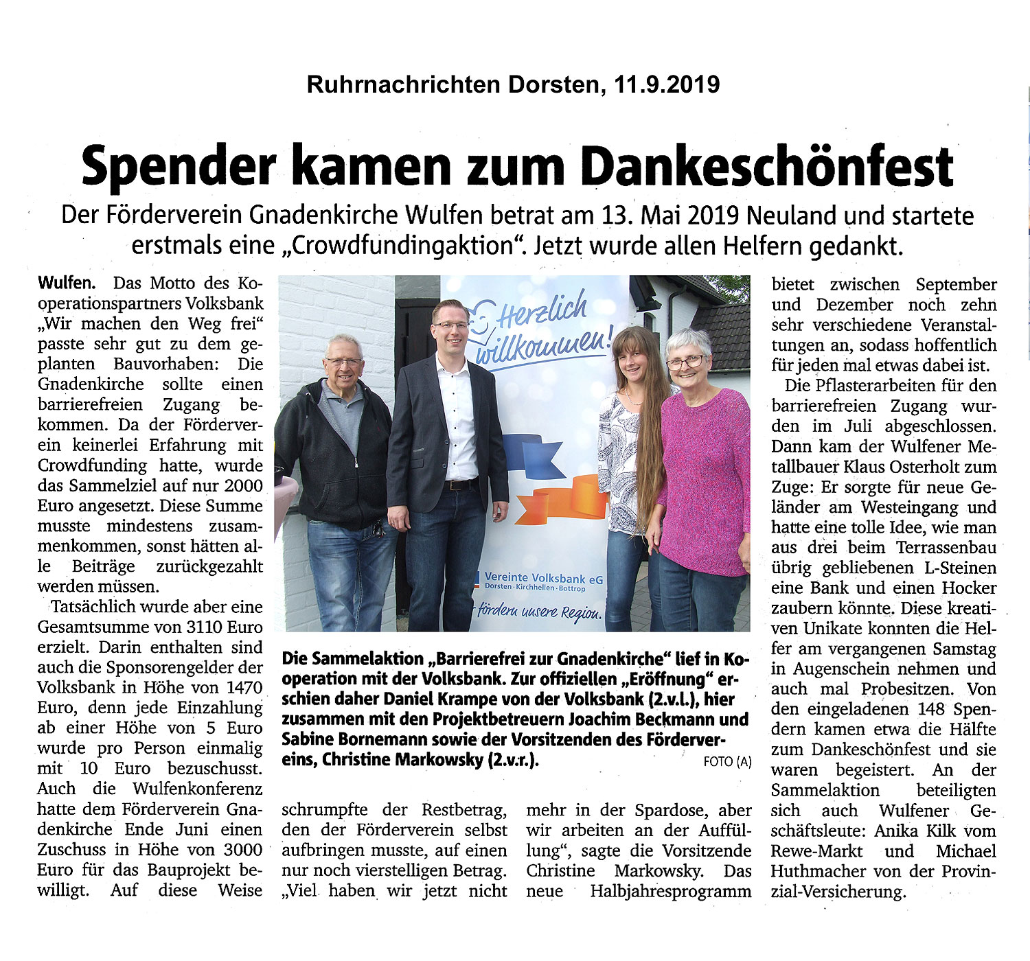 Helferfest zur Sammelaktion "barrierefreier Weg" an der Gnadenkirche