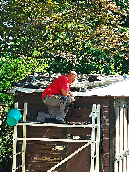 Bisher war das Hüttendach nur mit einer Folie geschützt.