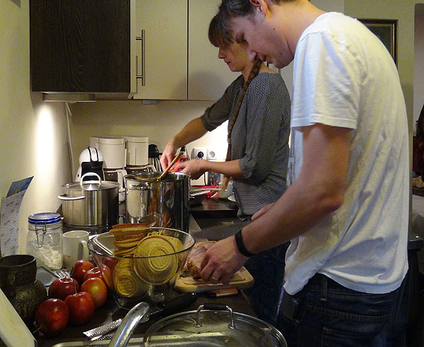 Christine Markowsky und Julian Heuser bei den Vorbereitungen in der Küche