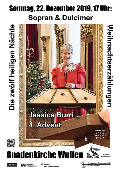 | aktuell | 11:31, 2. Dez 2019 | 424×600 (97 KB) | Wul (Diskussion | Beiträge) | Am 4. Advent wird es besinnlich und musikalisch in der Gnadenkirche: Jessica Burri erzählt Weihnachtsgeschichten und begleitet sich selbst auf dem "Dulcimer", einem alten englischen Saiteninstrument. |