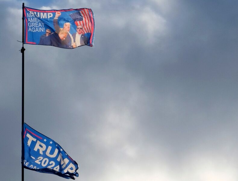 2 von 4 Flaggen auf einem Privathaus Großer Ring 6. Zu sehen seit der US-Präsidentschaftswahl, Foto vom 3.1.25 gruber