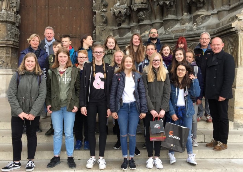 Austausch mit Dormans, Foto aufgenommen vor der Kathedrale in Reims, Ende April 2017