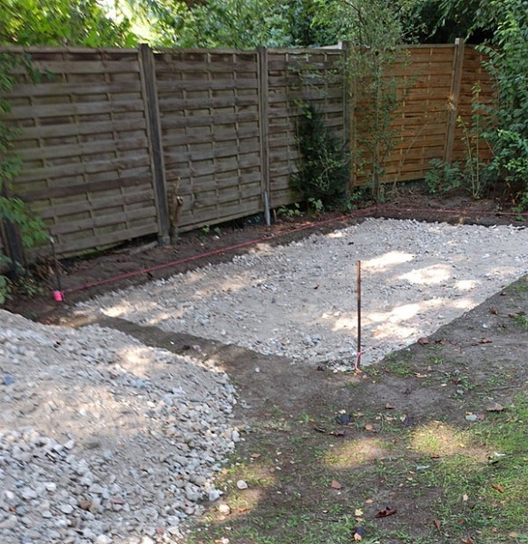 Für das Fundament wurde Recyclingschotter eingefüllt und verdichtet.