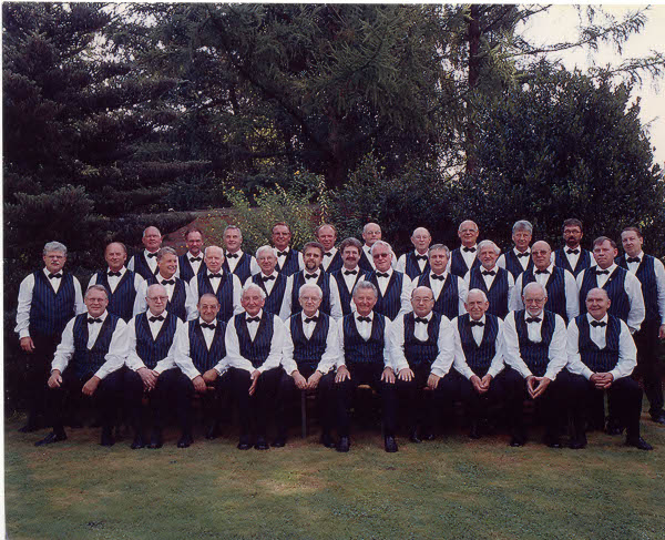 Ende der 1990er Jahre bekamen die Sänger des MGV Westen mit Fliege für Auftritte in der warmen Jahreszeit. Quelle: Privatarchiv J. Wuest