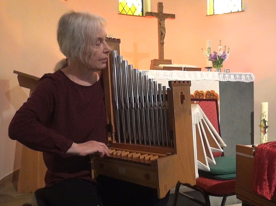 Ulrike von Weiß spielte auf einem "Portativ", einer mittelalterlichen Pfeifenorgel