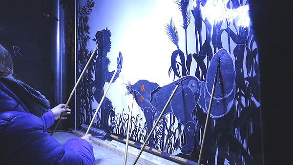 Die Kinder durften hinter der Leinwand auch mal selber Figuren führen.
