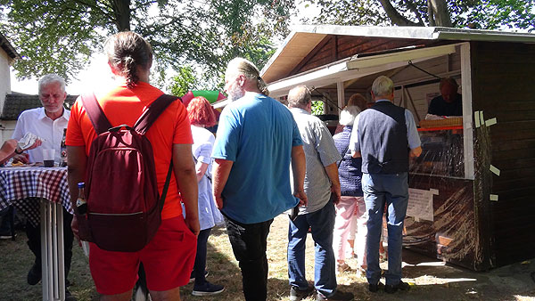 Vor der Grillhütte im Garten bildeten sich lange Schlangen.