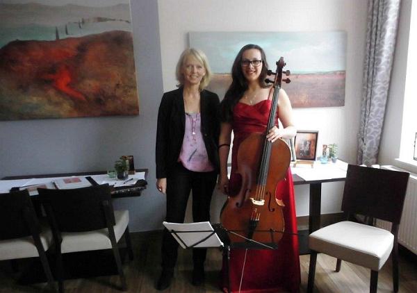 Christa Nienhaus-Rekers und die bulgarische Cellospielern Krasimira Kostova bei der Vernissage im "Capannina" , Foto: Wolf Stegemann