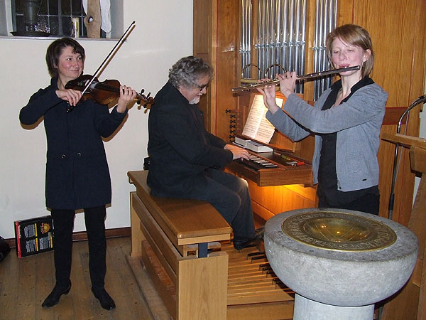 Prof. Ortwin Benninghoff (Orgel), Oksana Popsuy (Violine) und Mareike Lenz (Flöte) von der Kiewer Kammerakademie