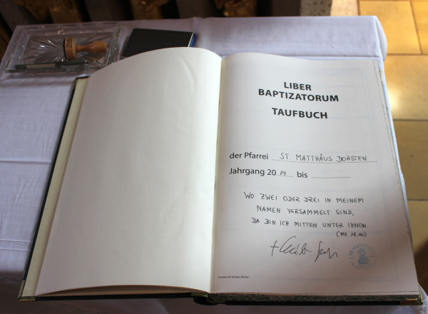 Im Gründungsgottesdienst wurde Anna Lena Hüsken getauft und damit das neu angelegte Taufbuch begonnen.